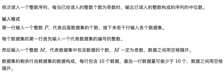if (i % 2 == 0) //每插入奇数个数就输出一次中位数